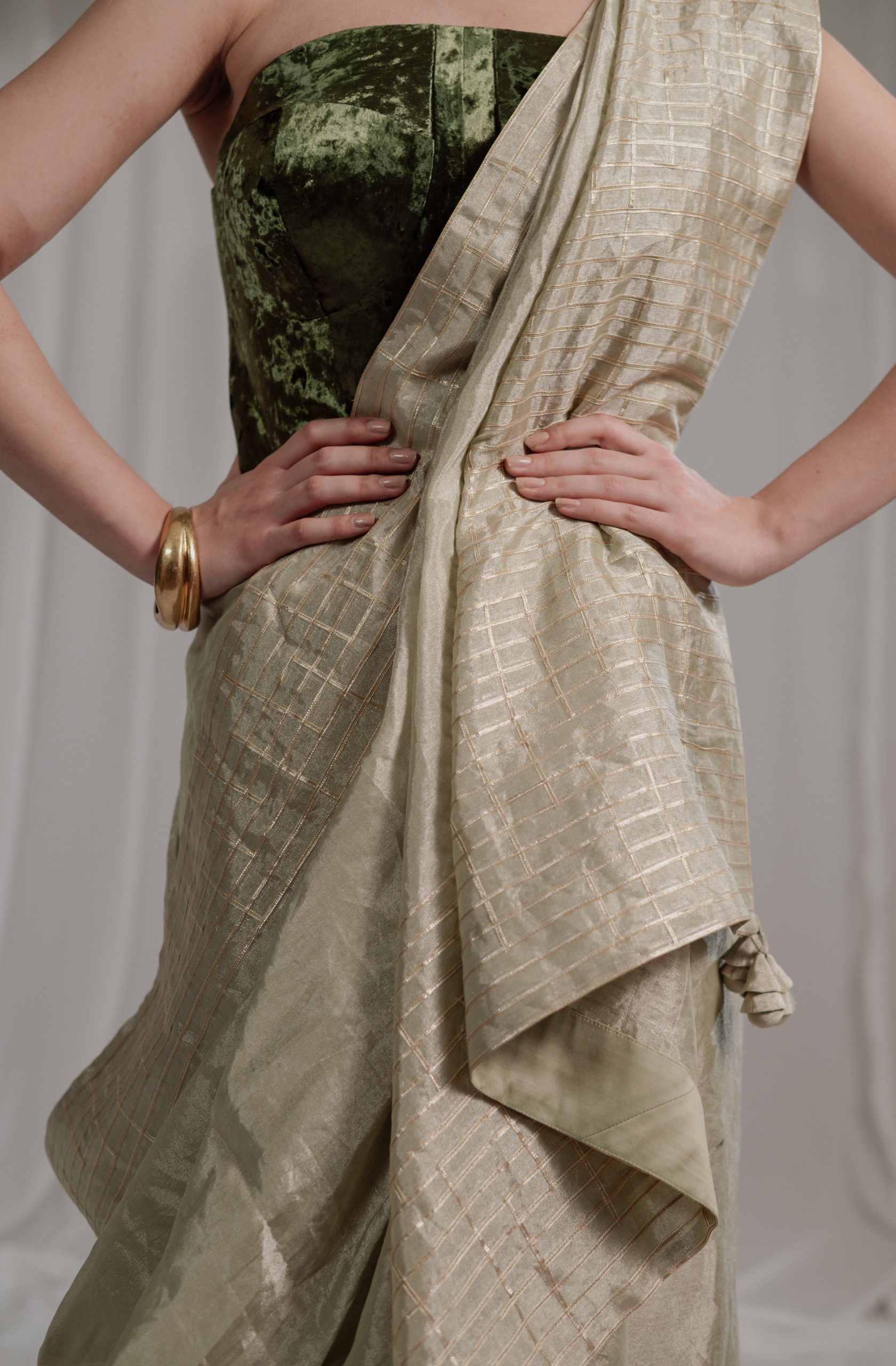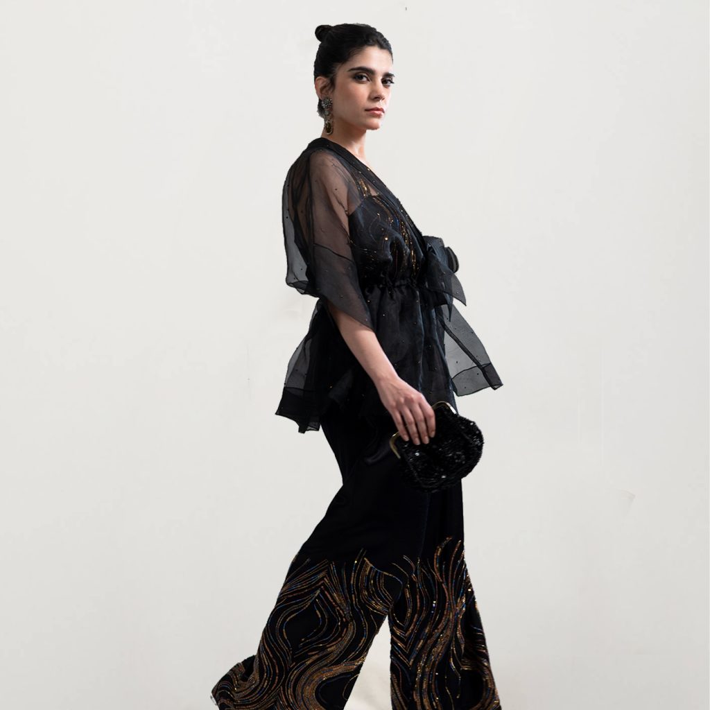 The designer’s relationship with textiles, craftsmanship, art and design started at an early age. Her love for textiles, designing, styling, the flair to understand the nature of fabric, colours, prints and aesthetics, resulting in visual harmony exhibited much early. The bent for creating something new came naturally to her. The art of reusing & recycling was a part of her creativity in her primitive years, promoting sustainability much earlier than sustainability was a word of awareness. Belonging to an industrial background, she carved her path towards her education in commerce in school & university, though passionately, her heart lied with the world of creativity, designs, styles and fashion.